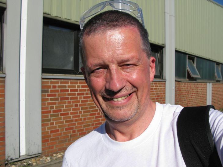 Als nächstes wurde die passende Bekleidung (vom Feinripp bis zur Jacke) ausgegeben, ich glaube bei der Hose hätte ich noch ordentlich zunehmen können 😉 , dazu Sicherheitsschuhe, Schienbeinschoner, Lampe, CO2 Filter für den Notfall, Helm und Schutzbrille. Leider habe ich vor lauter Begeisterung vergessen, Bilder von der Montur zu machen, aber das offizielle Gruppenfoto folgt in ein paar Tagen seht ihr am Anfang des Blogbeitrags. Ihr erinnert euch ja noch an das Bild, daß ich im Juni auf der Zeche Zollverein gemacht habe. Dann ging es im Förderkorb mit ca. 12 Metern/Sek. (rd. 40 km/h) auf Sohle 6 in rd. 1080 Meter Tiefe. Während der Seilfahrt mußte ich mir 2-3 Mal die Nase zuhalten und kurz zwecks Druckausgleichs pusten. Danach ging es mit der Dieselkatze (einer Art Einschienenhängebahn mit dieselhydraulischem Antrieb) zum Abbaufeld in rd. 3 km Entfernung.