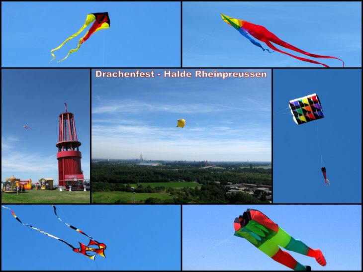 Am Samstag war ich zum ersten Mal beim Drachenfest auf der Halde Rheinpreussen in Moers. Rund um die ca. 30 m hohe Grubenlampe (Geleucht), welche gleichzeitig ein Aussichtsturm ist, glich der Platz an diesem Wochenende einer Mischung aus Jahrmarkt und Campingplatz. Jeder der einen Drachen steigen lassen wollte war eingeladen dies zu tun. Ich hatte gehofft, auch große und ausgefallene Drachen zu sehen, aber tagsüber wollten die bei strahlendem Sonnenschein und rd. 30 Grad wohl nicht in die Luft steigen. Einige dennoch gestartete Versuche schlugen leider fehl. Wäre es möglich, daß Drachen ab einer gewissen Größe (ähnlich wie Heißluftballons) eher am frühen Morgen oder Abend aufsteigen und tagsüber nicht den richtigen Auftrieb haben? Wenn dem so sein sollte, war ich über Mittag wohl zur falschen Zeit auf der Halde. Trotzdem sind ein paar Fotos entstanden und die Aussicht von der Halde Rheinpreussen ist sowieso immer klasse. Von Rheinberg über Dusiburg war in der Ferne sogar die charakteristische Innenstadt von Essen zu erkennen. Bilder … Flickr, Sevenload, Picasaweb (Google+).