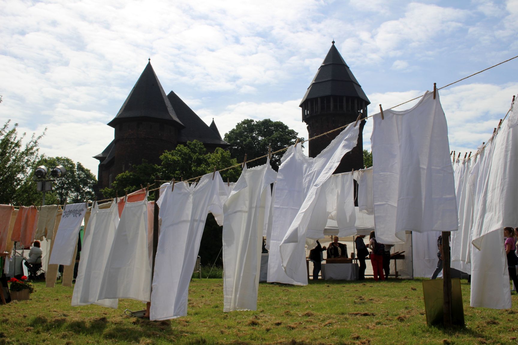 Samstag kurz nach 7.00 Uhr, der Wecker klingelt. Was zum Teufel hat mich geritten so früh aufstehen zu wollen? Ach richtig, es ist wieder Pfingstwochenende und damit Flachsmarktzeit in Krefeld. Ich zücke mein Handy und nutze mal wieder das Handyticket für den ÖPNV, denn der Bus hält vor meiner Haustüre und die Straßenbahn, in die ich umsteigen muß, genau vor der Burg Linn. Der Flachsmarkt, der dieses Jahr immerhin schon zum 40. Mal rund um die Burg Linn in Krefeld stattfand, ist bei mir ja so eine Sache. Als ich vor gut 25 Jahren nach Krefeld gezogen bin, wußte ich (verständlicherweise) nichts von traditionellen Veranstaltungen in dieser schönen Stadt. Dann war ich das erste Mal in Linn und erinnere mich an Regenwetter, was im Mai ja vorkommen soll. Die Wiesen rund um die Burg waren matschig, wir trugen hübsche Gummistiefel und gehörten zu den wenigen, die trockene Füße hatten 🙂 .