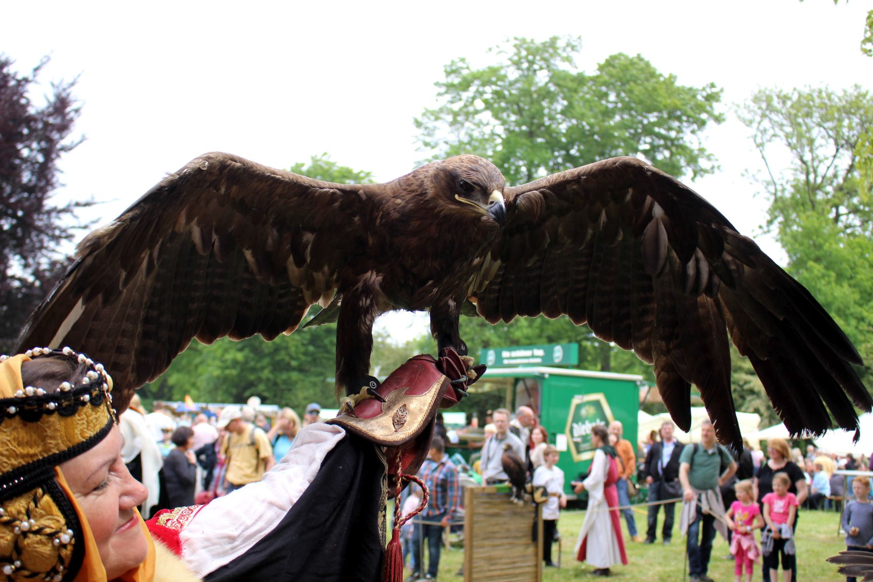 Der Programmplan hift dabei, die Veranstaltungen des Marktes im Auge zu behalten. Neben den, an unterschiedlichen Orten stattfindenden Musik- und Künstlergruppen (Bänkelsängern), verfolge ich sehr gerne das Ritterturnier, das mit sehr viel Liebe und immer ein bisschen Ironie vorgetragen wird sowie die kleine Falkner Flugshow. Sehr schön auch wie die Kinder bei der Flugshow eingebunden werden. Manche können es gar nicht abwarten den Vogel von der Falknerin auf den Arm gesetzt zu bekommen 😀 . Last but not least gibt es ausreichend Stände, an denen etwas für das leibliche Wohl angeboten wird.