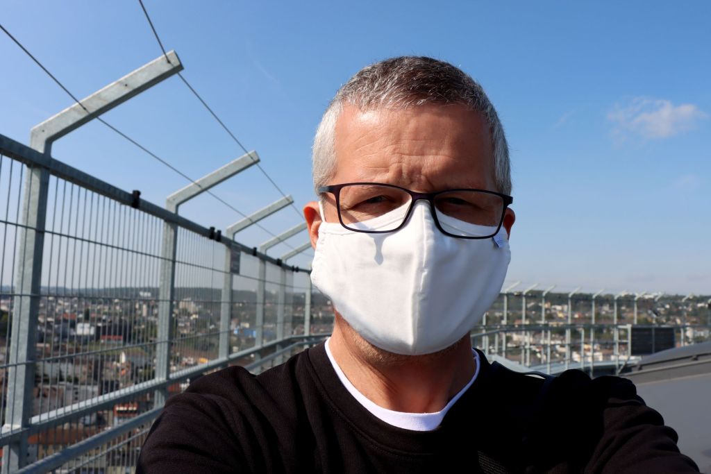 Dann geht’s in den gläsernen Aufzug und ab nach oben. Jetzt merkt man erst wie riesig das BigAirPackage ist. Man fährt und fährt und fährt … Knapp unter der Decke darf man aussteigen und runterschauen. Keine Angst, kräfigartige Metallgitter verhindern schlimmeres. Fotos machen ohne Ende, dann rauf aufs Dach zur Aussichtsetage. Solange man auf der Westseite steht geht’s. Wunderschöner Sonnentag bei rd. 3-4 Grad. Geht man dann den Rundweg einmal rund ums Dach kommt man unweigerlich auf die Ostseite und der Ostwind bläst einem alles weg, was bei 117 Metern Höhe nicht angebunden oder festgezurrt ist. Ich habe Mühe den Fotoapparat ruhig zu halten. Das hält man ja im Kopp nicht aus. Schnell wieder zurück auf die Westseite, Instagrambild zusammengedaddelt, zurück nach drinnen und im Aufzug wieder nach unten. In Parterre gibt’s noch eine Ausstellung bisheriger Christo Projekte. Jetzt brauche ich wieder etwas Wärme und da das Auto schön in der Sonne steht, schnell rein und Türe zu. Ich finde der Besuch hat sich gelohnt, für den Eintritt habe ich übrigens die RuhrTopCard genutzt.