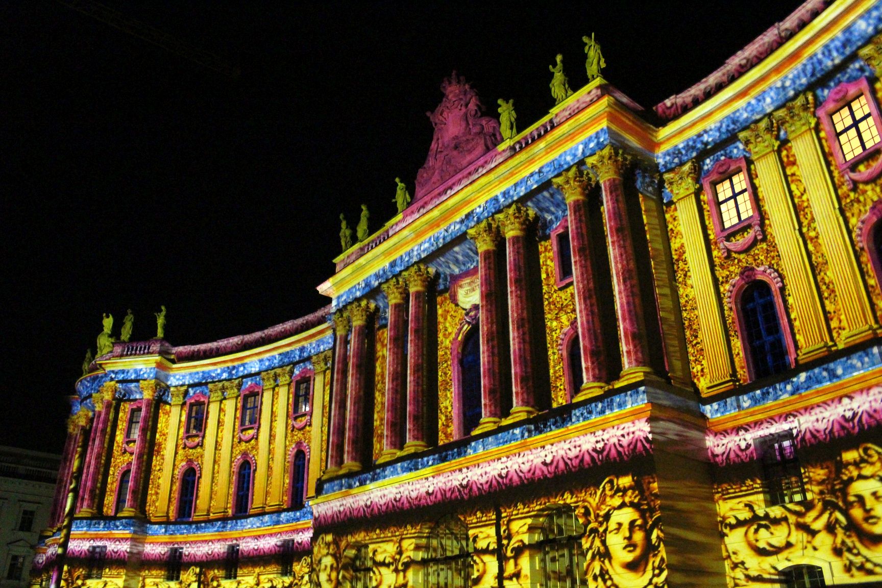 Auch die Siegessäule (incl. Viktoria, im Volksmund auch „Goldelse“ genannt) wurde mit einer Videoprojektion bespielt. Da es schwierig ist, hier gute Fotos zu machen, versammeln sich am Sonntagabend auch nur eine Hand voll Fotografen, geschweige Zuschauer, dort. ISO Zahl rauf, Belichtung ebenfalls und trotz hohem Bildrauschen ein paar Schnappschüsse gemacht. Nach ca. 20 Minuten ist die Show 2 x durch, ich mache mich auf den weiteren Weg.