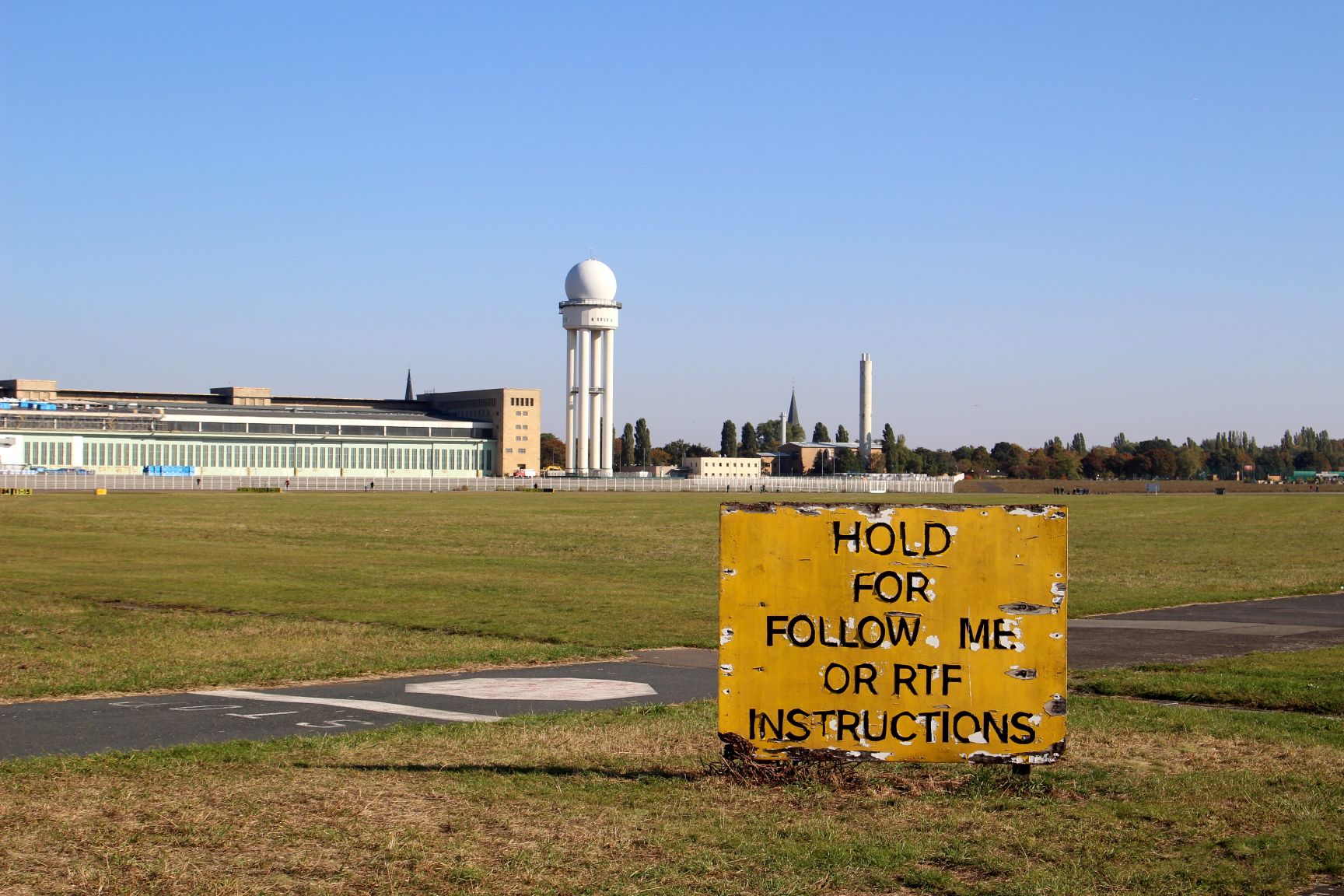 Dafür gab es dieses Mal die Drachenfreunde und Kiteboardsurfer zu sehen. Ich habe mich zu Fuß auf gemacht, um das ehemalige Übungsflugzeug der Flughafen-Feuerwehr Tempelhof zu suchen. Vom Eingang Tempelhof geht es quer über die Wiese immer geradeaus und anschließend über die ehemalige Landebahn zurück. Ich war wieder aufs neue beeindruckt, welche Riesenfläche hier für Freizeitaktivitäten zur Verfügung steht. Belustigt hat mich hingegen das Schild „HOLD FOR FOLLOW ME OR RTF INSTRUCTIONS“ (s.o.) :-). Von Tempelhof sind es nur ein paar U-Bahnstationen bis nach Kreuzberg und zum gleichnamigen Berg am Viktoriapark.