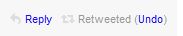 … sondern den Namen des Ursprungstwitterers mit seinem Avatar, dem o.g. Icon und dem Originaltext. Erst darunter (in klein) der Hinweis „Retweetet by …“.