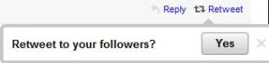 Ach so, ich gehöre seit gestern zu der Betagruppe, welche die neue Twitter Retweetfunktion testen darf. Zwar war die Funktion zwischendurch kurzfristig wieder weg, dann allerdings war sie plötzlich dauerhaft da. Hier also ein erster Überblick … was ist der Unterschied, zum alten Retweet? Unten rechts auf jedem Tweet steht neben dem „Reply“ Button jetzt ein „Retweet“ Button. Klickt man drauf, erfolgt eine kurze Abfrage „Retweet to your followers?“ und ein „Yes“ besiegelt den (Re-)Tweet.