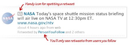 [2.Update] Auf der rechten Seite gibt es unter dem Eintrag „Direct Messages“ und „Favorites“ jetzt übrigens einen neuen Punkt „Retweets“. Hier findet ihr alle eure Retweets, die eurer Follower und eure Tweets, die andere Leser Retweetet haben.