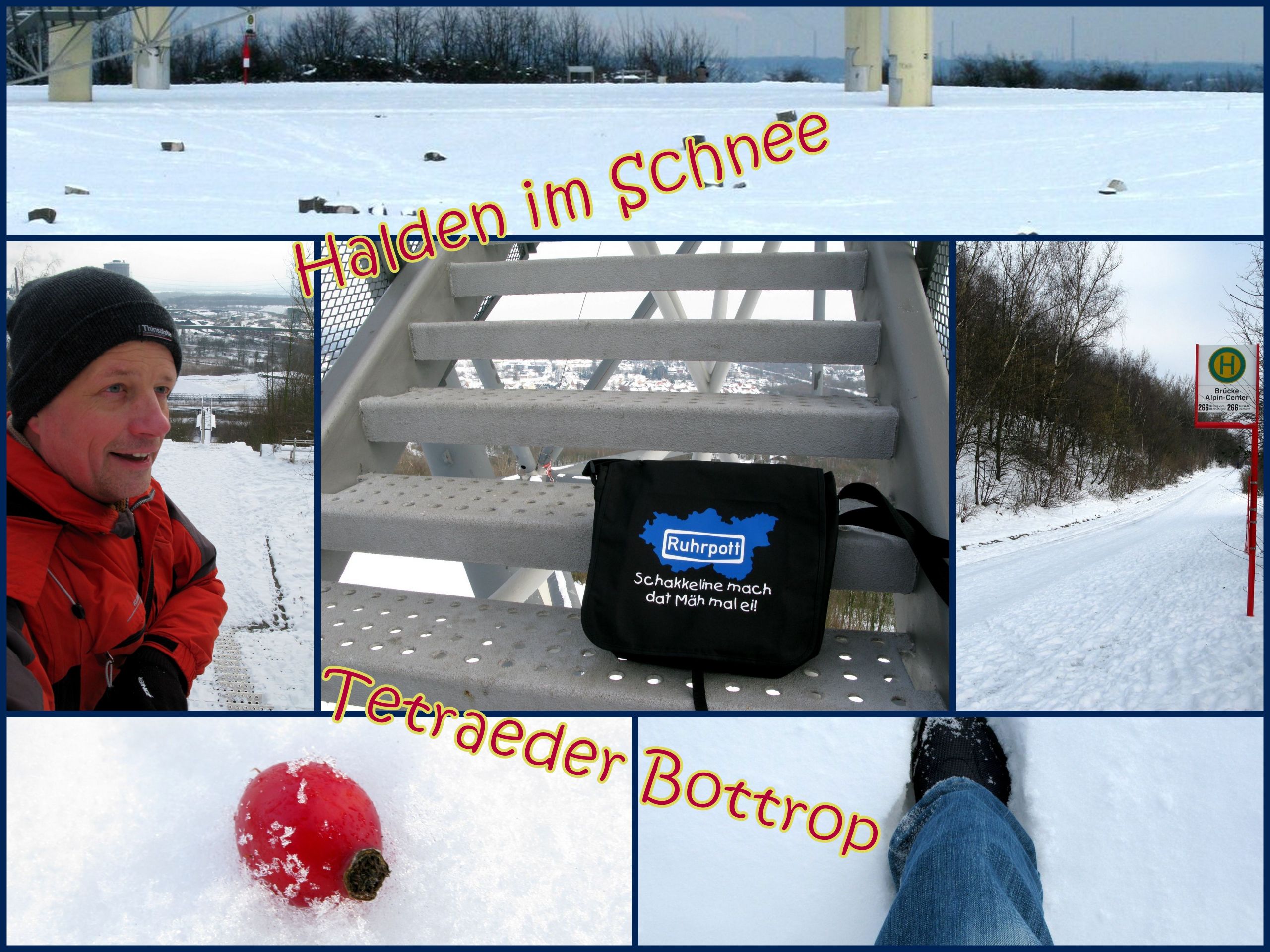 Willommen zu einer neuen Folge Schweine im Weltall … äh .. Halden bei Schneefall 🙂 . Sacht ma, warum vergeht eigentlich die Zeit immer so schnell? Ich war im April das letzte Mal am Tetraeder, aber irgendwie ist der Blogbeitrag dazu irgendwo unter den Tisch gefallen. Irgendwann habe ich’s gemerkt und gedacht nu ist auch zu spät. Also habe ich die Serie „Halden im Schnee“ von Anfang Dezember heute fortgesetzt und ein paar Winterbilder am Tetraeder geschossen. „Schakkeline“ war natürlich auch dabei 😉 .